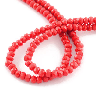 Margele din sticla, rondele fatetate, culoare rosu.